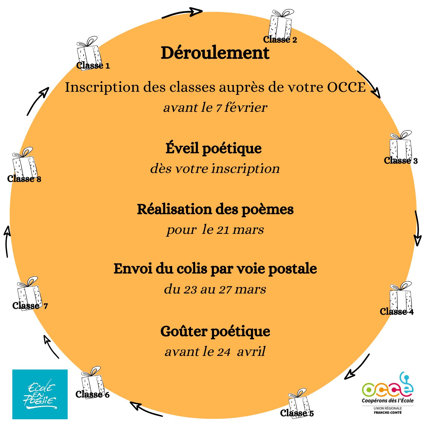 Le principe est simple : vous engagez votre classe à offrir un colis poétique à une autre classe engagée dans l’action et vous recevrez également un colis poétique d’une classe différente.